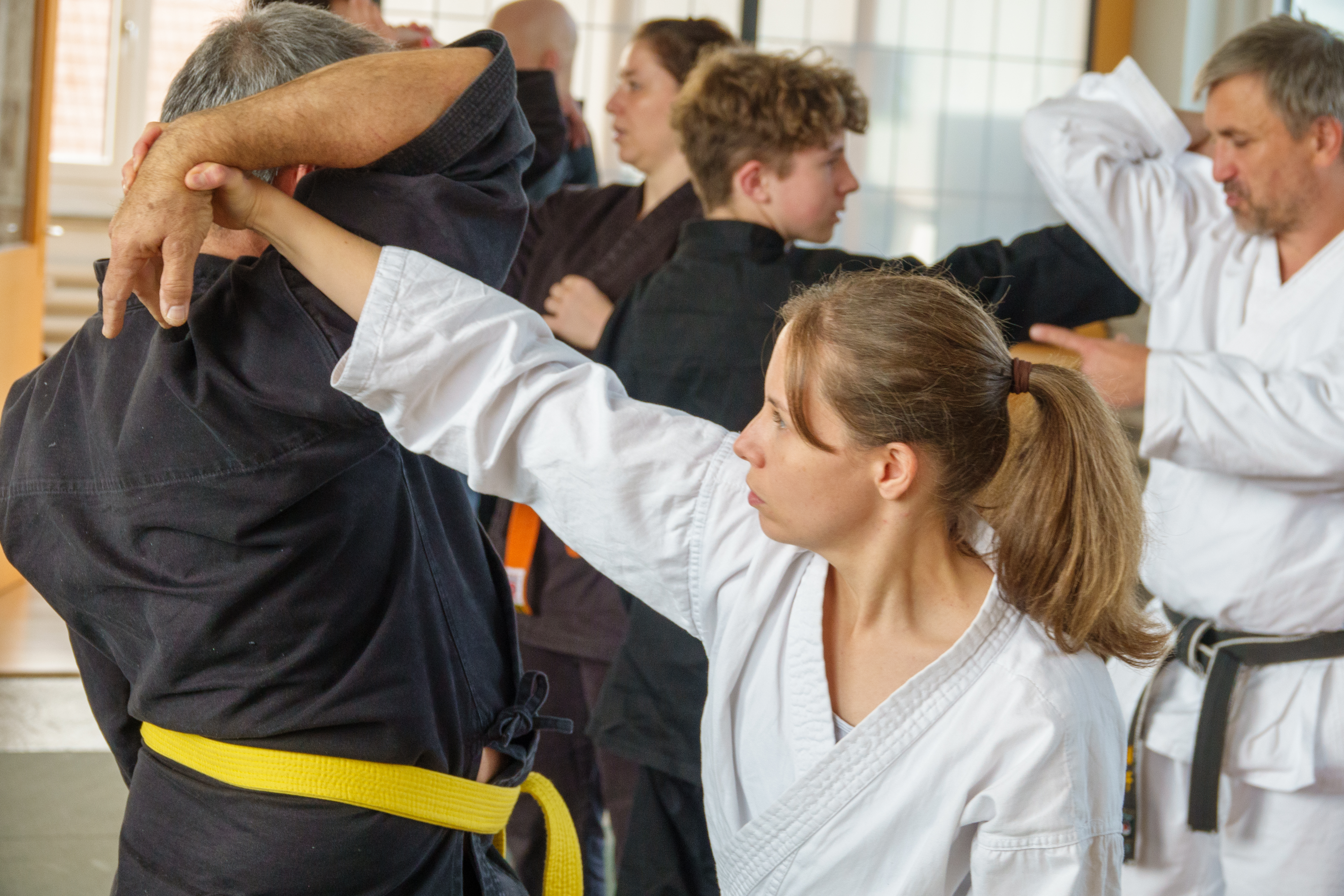 Une approche holistique : Nous croyons fermement que la pratique des arts martiaux n’est pas seulement une affaire de technique. Le Goshindo combine maîtrise de soi, bien-être mental et physique, et self-défense.