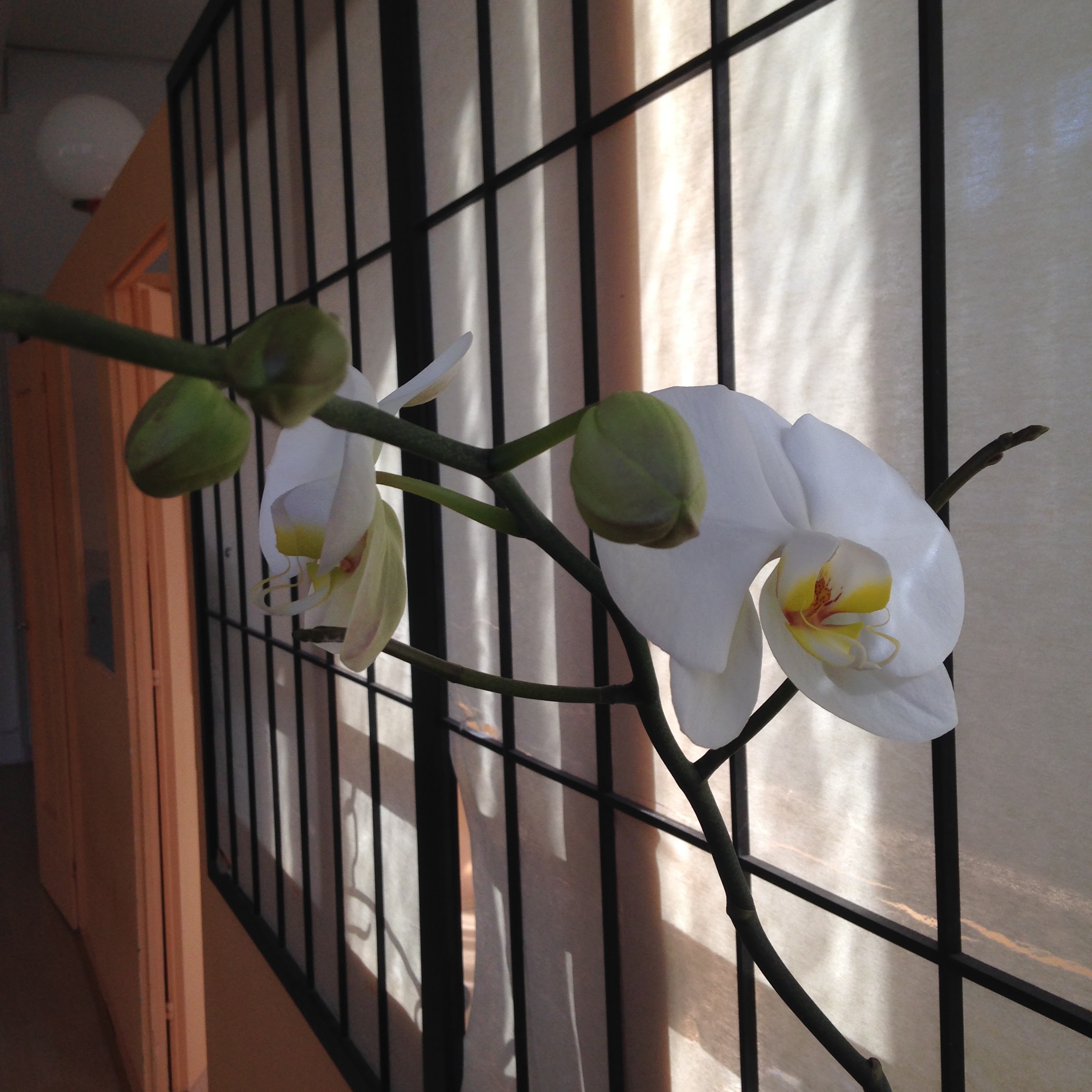 Il y a 18 mois, le Dojo a été agrémenté de verdures et parmi elles, une petite plante verte discrète, sans prétention, mois après mois, elle s’est développée, millimètre par millimètre, se sentant toujours plus à l’aise dans cette salle merveilleusement illuminée. Certes nous l’avons aidée, arrosée, mais c’est elle qui a fournis tous les efforts. Depuis quelques jours la petite plante est devenue une magnifique orchidée, épanouie et entourée de multitudes de pousses et boutons qui laissent à penser que la progression n’en est qu’à ses débuts.